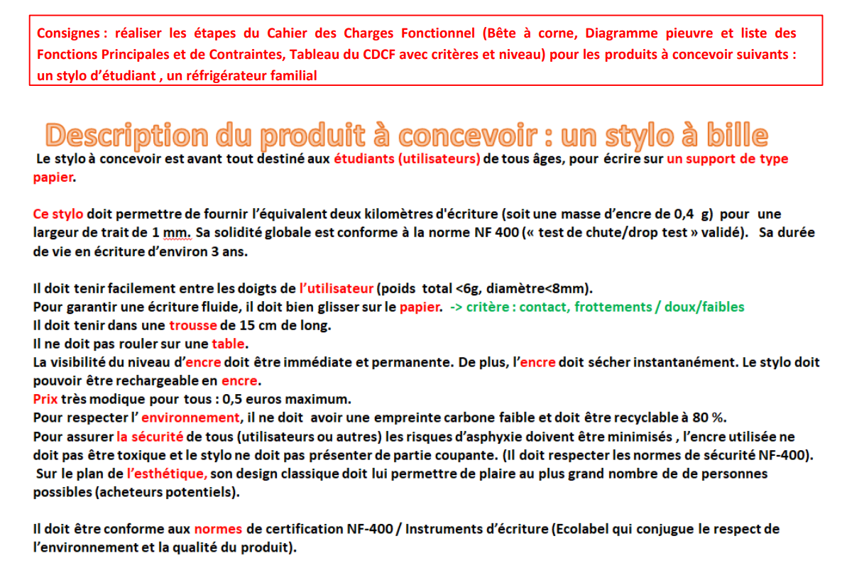 Les différentes parties d'un cachier des charges